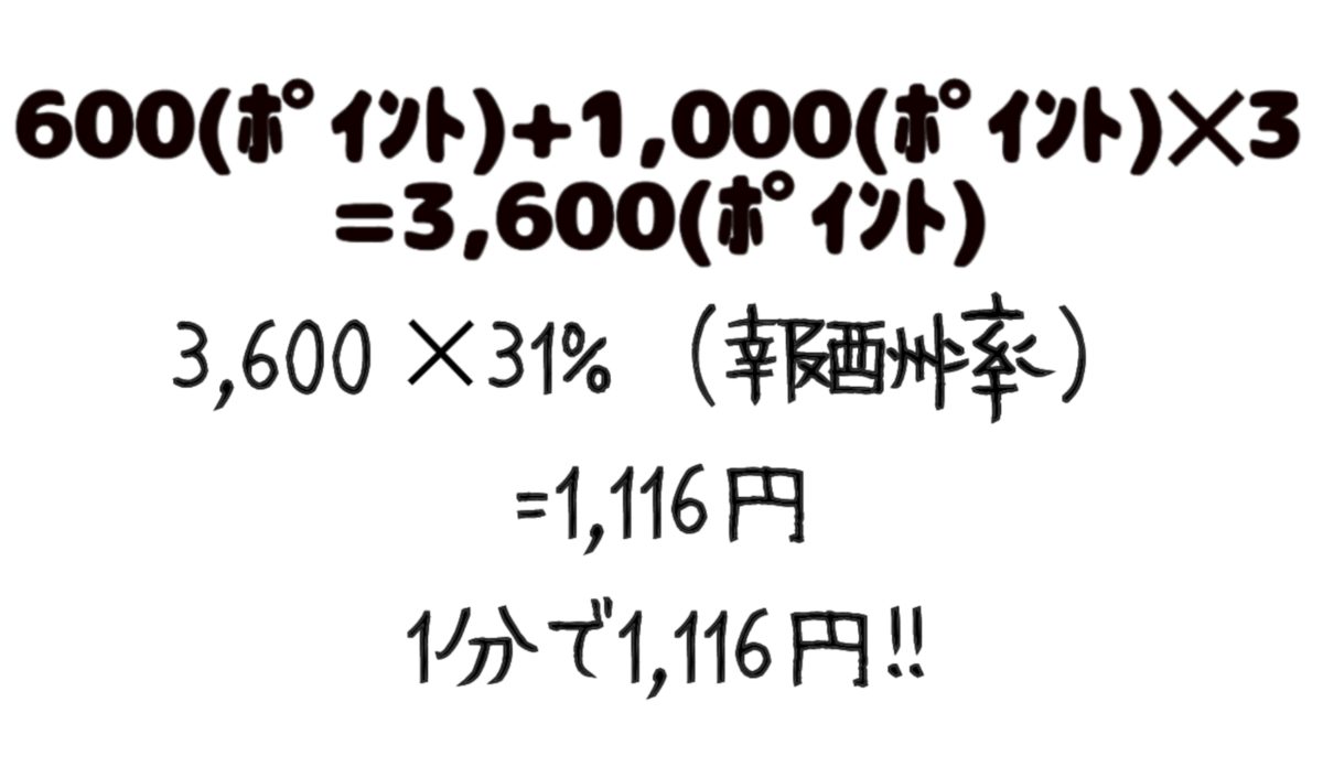 1分100ポイント(100円に換算)が必要だとします。