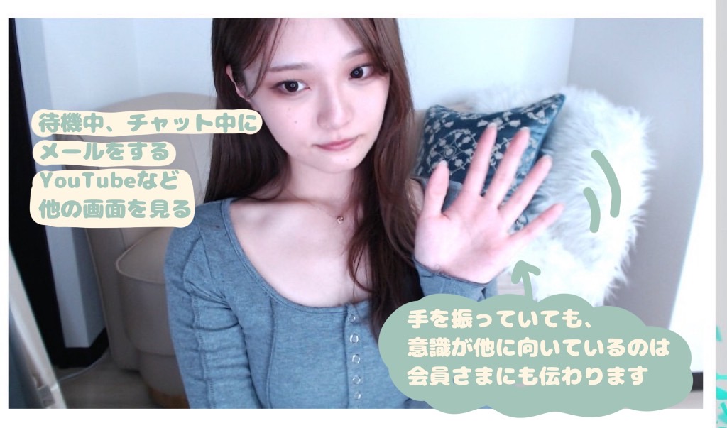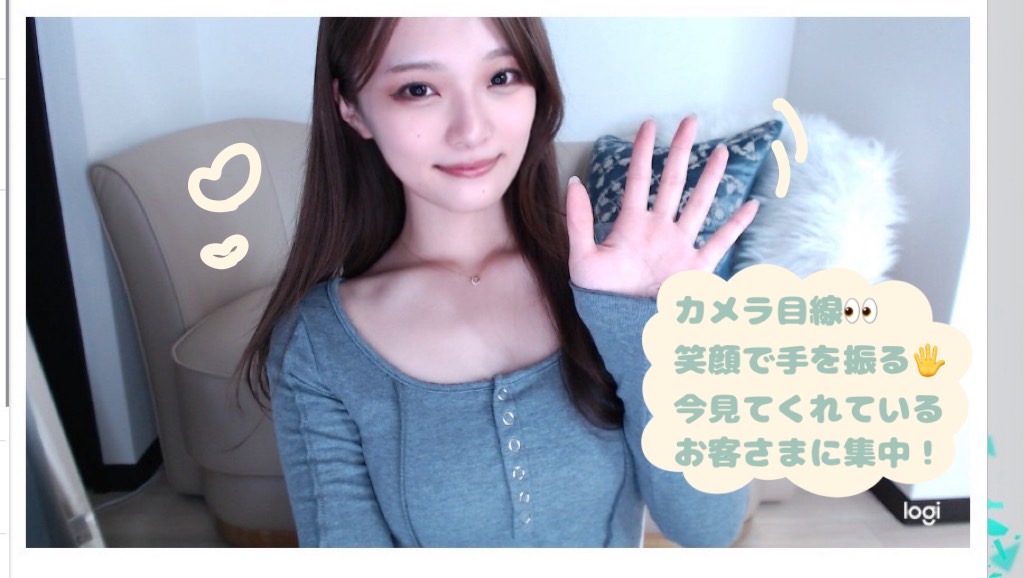 しっかりカメラを見て待機をしたりお話をすることで、男性側の画面からは目が合っているように見えて好印象ですよ(*´`*)♡