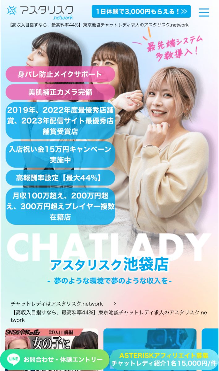 池袋駅徒歩3分にチャットレディ事務所アスタリスクがNewOpenしました。女性スタッフのみがサポートする口コミNo1人気のチャットレディ事務所です