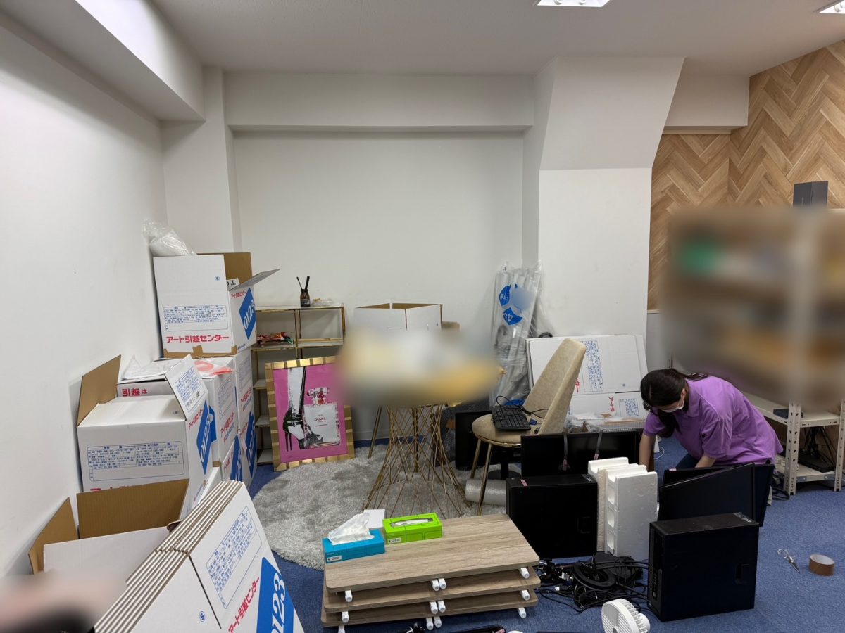 旧事務所ではダンボールが積み上がって、
