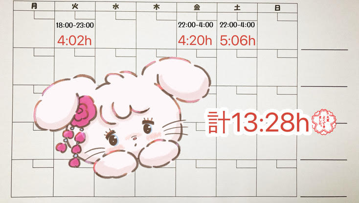 18:00-22:00で4時間入れたとしましょう。
