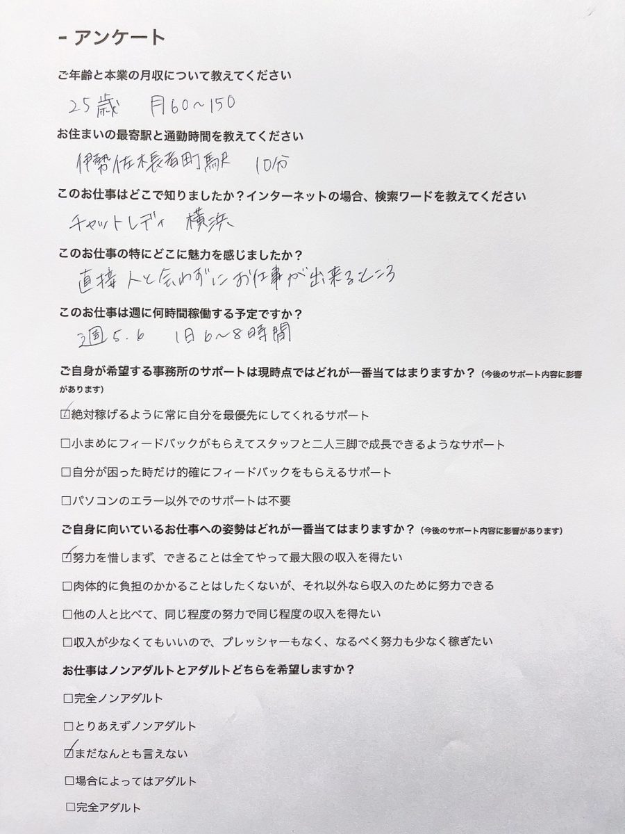 - 【本日の面接の様子】25歳 ブルーライン沿線在住