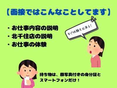 女性スタッフのみで運営している、初心者さんも安心のチャットレディ事務所です。 広くて綺麗な完全個室のマンションタイプ店舗で、宿泊も可能。 北千住駅徒歩8分・千住大橋駅徒歩6分、6路線利用可能で通いやすい環境です。
