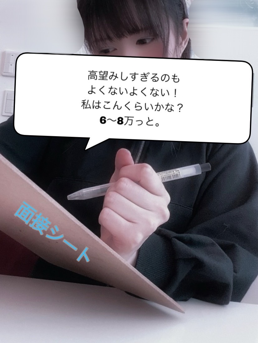 面接シートの稼ぎたい目安欄に 6~8万(6時間/週4くらいで)って書きました。