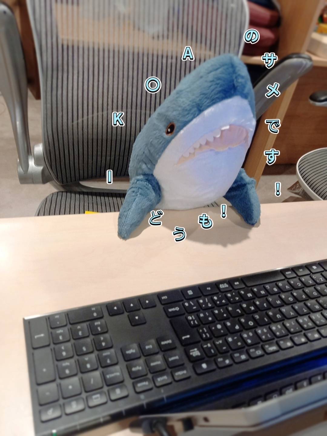 この間にこさんがIKEAにイケアした時にお願いしてサメのぬいぐるみ買ってきてもらいました!