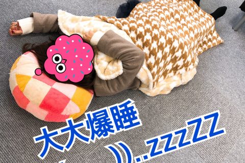 が事務所の床で爆睡してました