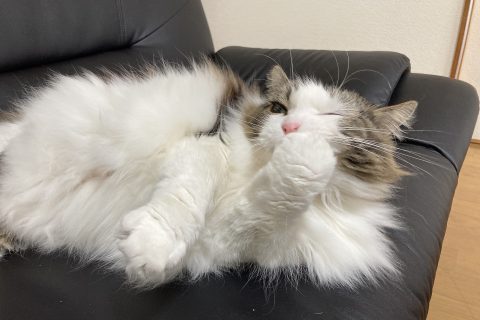 だから基本は仰向けで寝てるし、オーナーが食べるものが大好き!!
