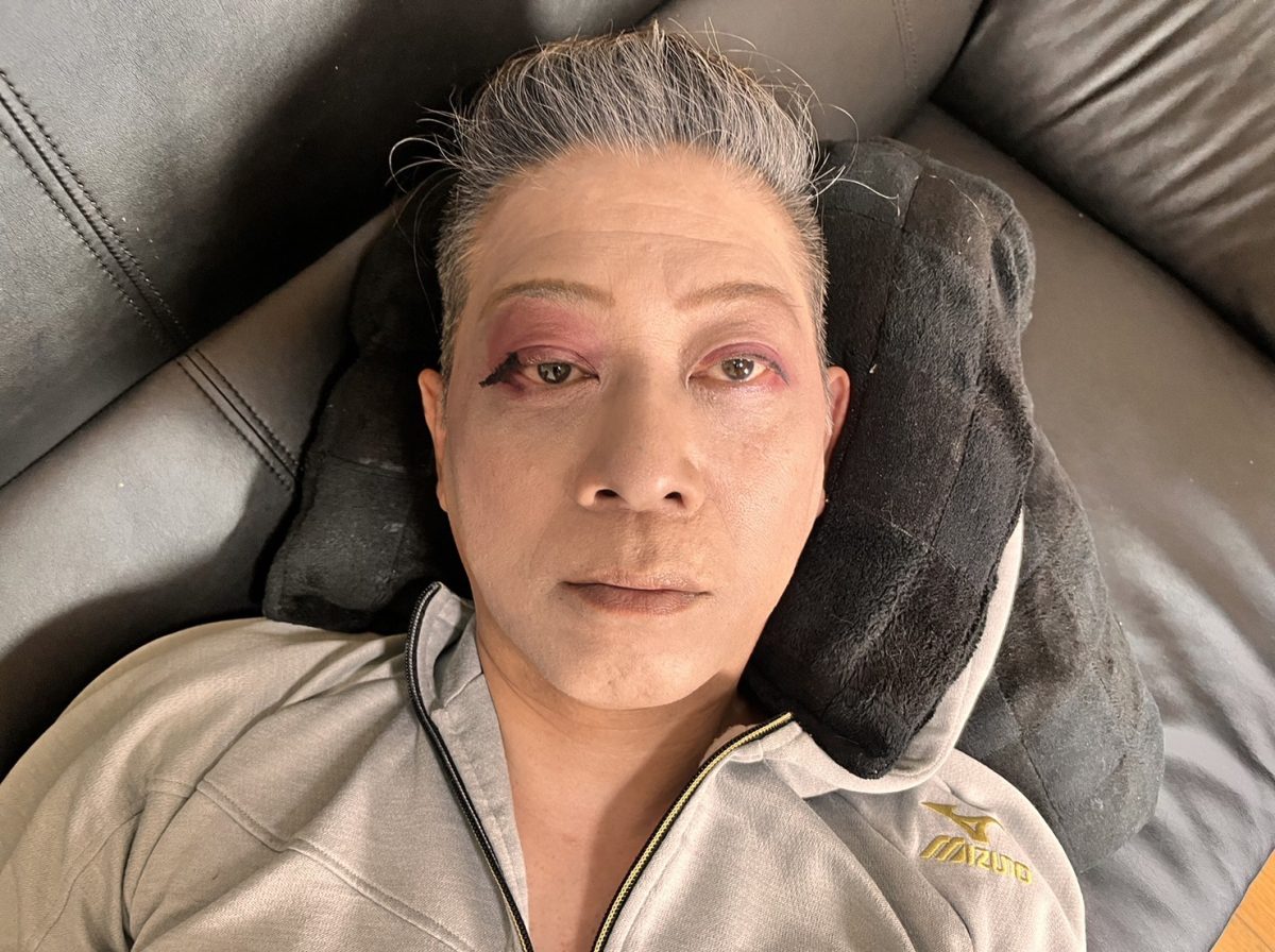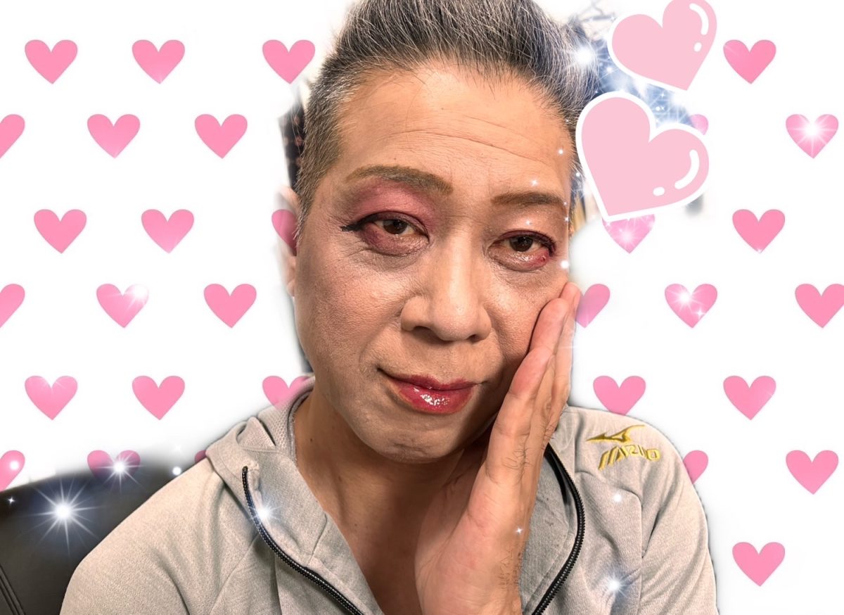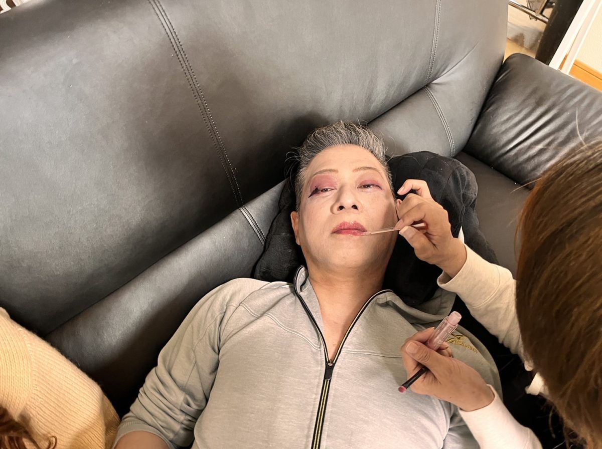 終わったら、彼、急いでメイクを落としてました(笑)