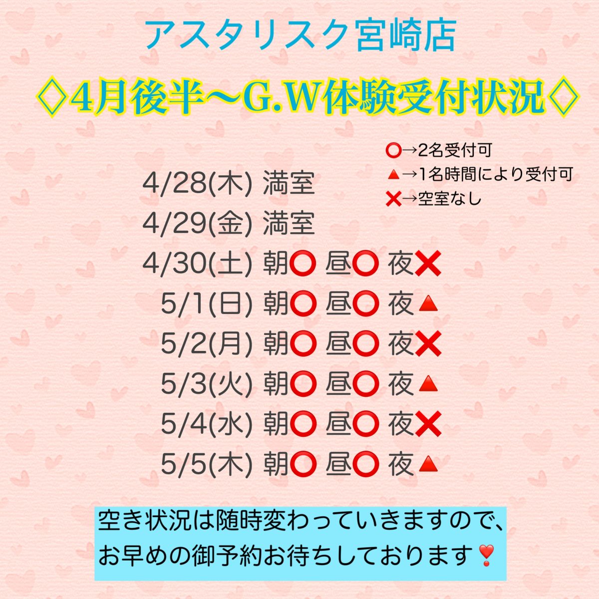 体験ご予約の受付状況はこちらです⏬