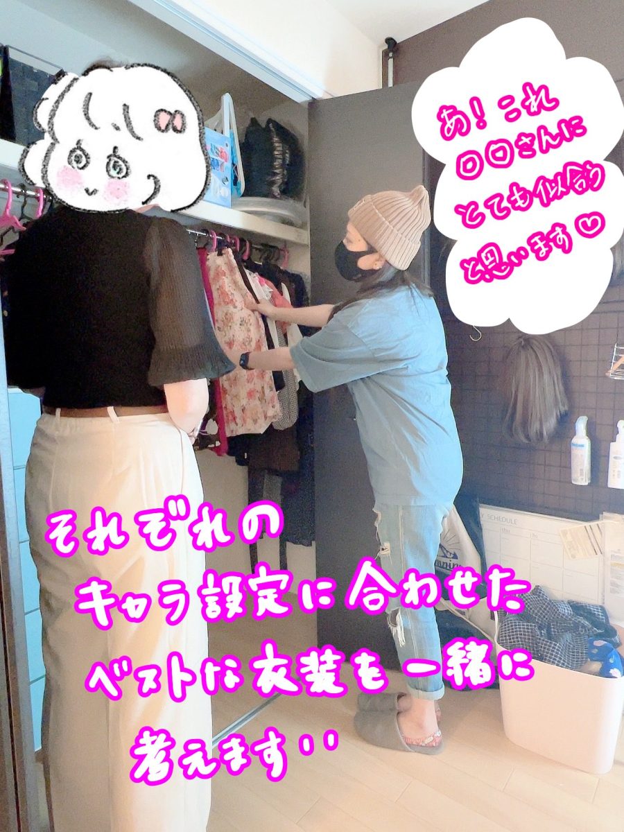 一緒に衣装を選んだり、身バレ防止のためにメイクなどもしていきます✨