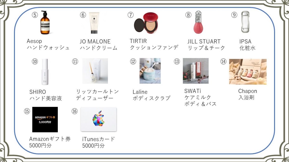 ギフトの内容は3000円~20000円前後で