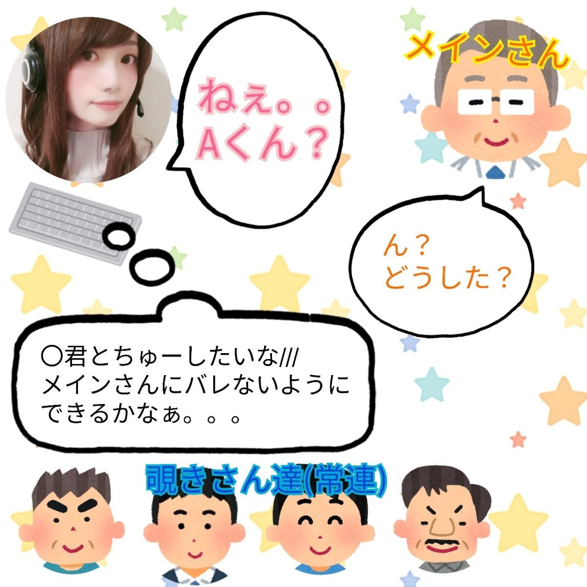 メインさんと会話中に常連のCさんが覗きで入ってきました。